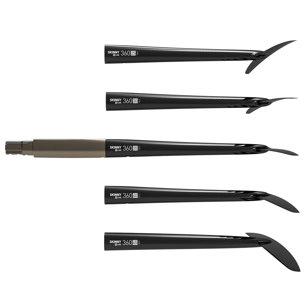 AXIS Skinny Link Rear Wings er den naturlige forlengelsen av det revolusjonerende Tempo-systemet – utviklet for foilere som krever fart, kontroll og presisjon i hvert øyeblikk på vannet. Bygget i Ultra High Modulus karbonfiber og utviklet hånd i hånd med Ti Link-titanfuselen, leverer Skinny Link-serien en perfekt strømlinjeformet passform med ekstremt lav motstand og maksimal effektivitet. Med fem størrelser å velge mellom, hver med 5 mm forskjell i chord-bredde, kan du finjustere foil-oppsettet ditt med kirurgisk nøyaktighet. Resultatet er perfekt balanse mellom løft, stabilitet og glide – uansett stil og forhold. Fra eksplosiv akselerasjon til silkemyk flyt, lar Skinny Link deg skreddersy bakvingen til frontvingen i Tempo-serien. Sammen jobber de som én enhet – et system som føles lettere, raskere og mer levende enn noe AXIS tidligere har laget. Egenskaper: