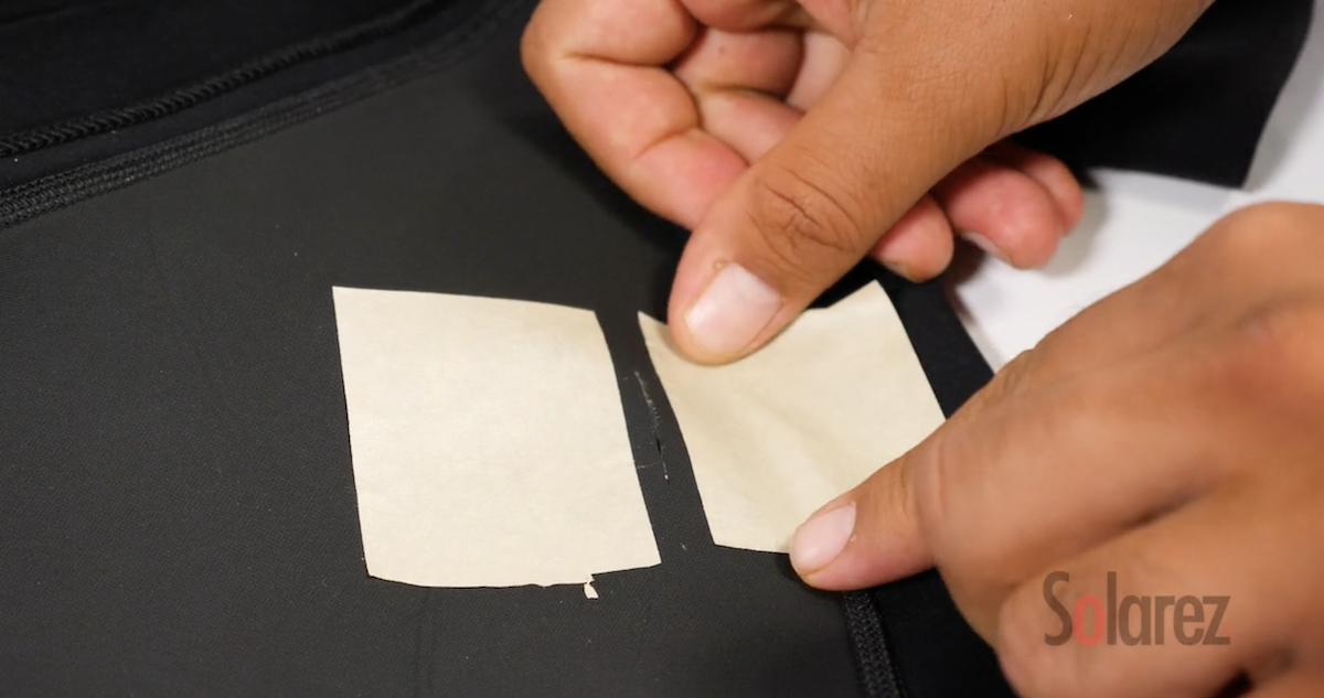 I eksempelet under har vi brukt Solarez Neo Rez reparasjonskit. Her følger alt du trenger med, unntatt teip.