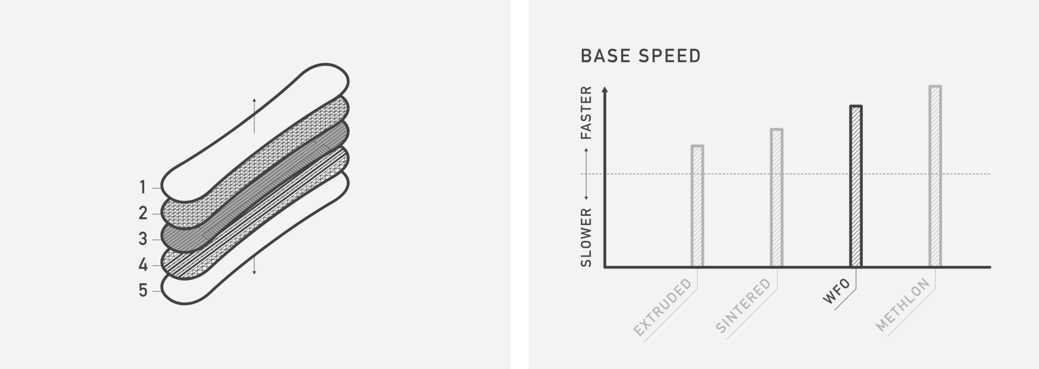 Sintered WFO Base presser en spesialutviklet voks dypt inn i porene på det ekstra-absorberende, svært denst og resirkulerte sintermaterialet i brettet. Dette gjør det svært slitesterkt og perfekt for kjøring hele sesongen under alle forhold.