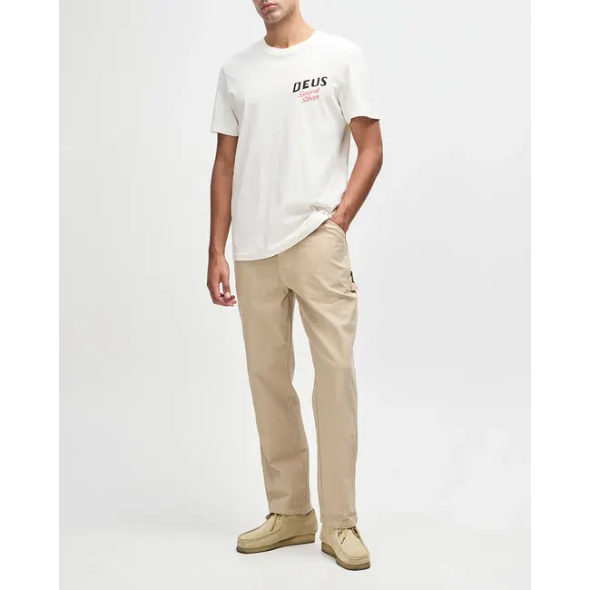 Deus Dogleg T-skjorte er en stilren og komfortabel t-skjorte fra Deus Ex Machina laget for deg som setter pris på klassisk design og funksjonelle detaljer. Modellen kombinerer robuste former med et avslappet uttrykk inspirert av verksted-, surf- og motorsykkelkultur.
