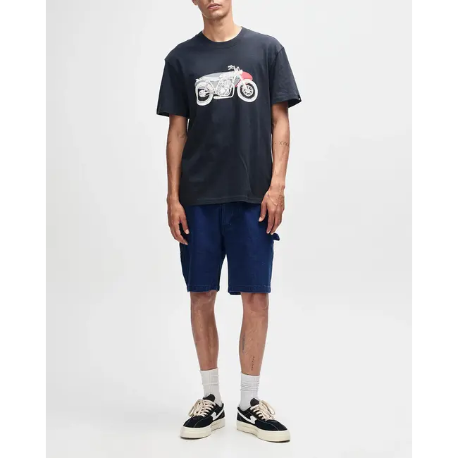 Deus Drovers Dog T-skjorte er en grafisk t-skjorte fra Deus Ex Machina inspirert av klassisk motor- og verkstedkultur. Grafikken hyller den rå estetikken rundt forgassermotorer, bensinlukt og gamle verksteder – en sentral del av Deus-universet.