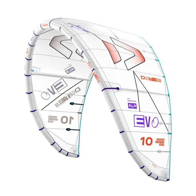 The Evo SLS, the ultimate performance allrounder designed for progressive riders who seek versatility across freeride, freestyle, and even wave riding. Built with advanced Penta TX and Trinity TX materials, the Evo SLS delivers explosive lift, dynamic jumping, and outstanding hangtime, making it the go-to kite for technical tricks and high-performance sessions. Engineered for maximum control across all conditions, the Evo SLS empowers riders to push their limits with confidence. Its SLS (strong, light, superior) construction enhances agility, ensuring that every maneuver feels responsive and effortless. One of the standout features of the Evo SLS is its faster turning capability, which results in a more playful feel on the water. The refined tip construction features more aggressive tapering and an additional leading edge segment, significantly increasing steering speed and responsiveness. This allows for quick adjustments to your direction, whether you’re carving through waves or preparing for a freestyle trick. The Evo SLS offers improved bar feedback and handling, thanks to changes made to the canopy attachment at the tip. This results in a cleaner and more balanced bar feel, establishing a better connection between rider and kite, crucial for effective control during dynamic conditions. With enhanced steering responsiveness, the Evo SLS provides more intuitive handling. The better transfer of steering forces into the canopy allows for a more direct and predictable reaction to bar input, giving riders the confidence to execute complex maneuvers. Moreover, reduced tip flutter during loops and tight turns is achieved through structural improvements in the tip area. This minimizes flutter during aggressive maneuvers, enhancing control and precision to ensure that your transitions are seamless and your movements are sharp. The kite's performance is further optimized with better loop and catch capabilities. With increased turning speed and stability, kiteloops are quicker, and the kite catches more reliably after a rotation, enabling you to focus on nailing your tricks without hesitation. Experience the freedom and versatility of the Duotone Evo SLS 2026, the performance “can do it all” kite that adapts to your style and challenges you to reach new heights, whether you’re cruising the waves or launching into the air.