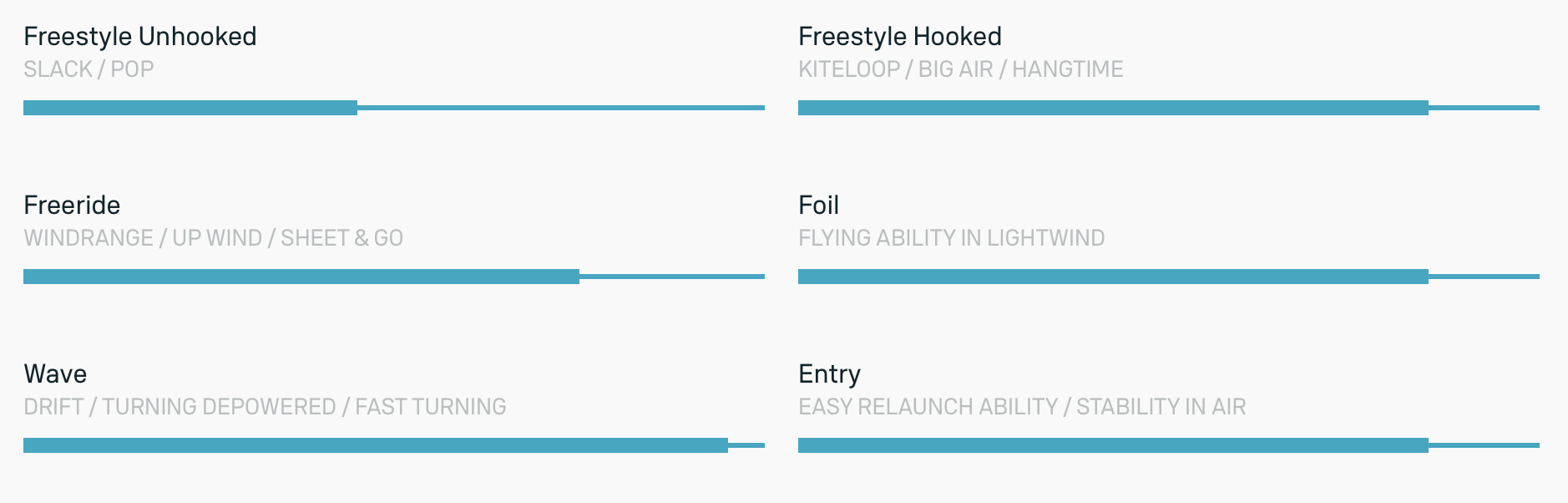 Takket være det innovative Hybrid Flex Strut-designet får du rask og dynamisk styring som er jevn og responsiv. De siste forbedringene inkluderer en oppgradert wingtip-konstruksjon for raskere styring og mykere svinger i alle situasjoner. Fra størrelse 8 og oppover har optimaliserte battens redusert vibrasjon i trailing edge for en mer strømlinjeformet opplevelse, og den lette battens-lommen bidrar til vektbesparelser uten å gå på kompromiss med holdbarheten.