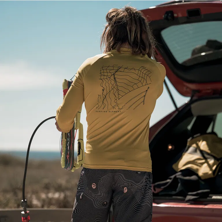 The Rashguard Long Sleeve men provides lightweight UV protection with a snug and flexible fit. This classic is made from recycled materials and comes with a stylish back print. With the raglan style sleeves, we minimized seams in the shoulder area, enhancing wearing comfort. Ride with ease thanks to the slip_loop, which lets you connect the top to boardshorts.