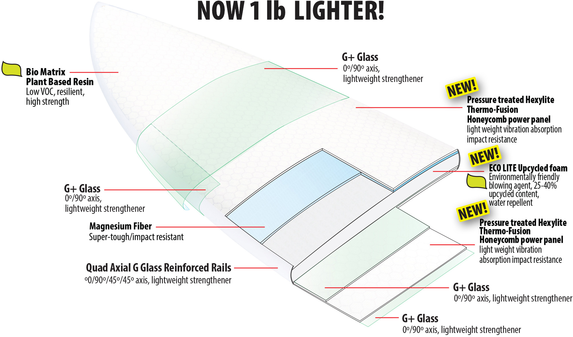 - 5 fin bokser for maksimal fleksibilitet (thruster eller quad)