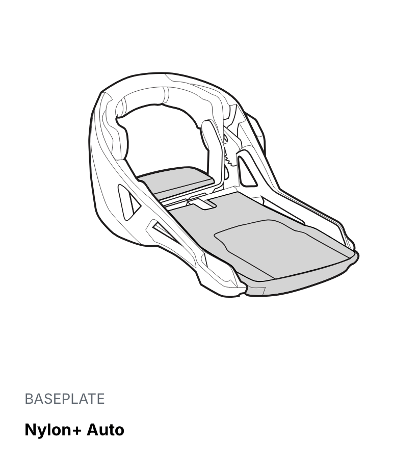Nylon+ Auto 30% GLASS FIBER, 70% NYLON The OG Supermatic baseplate is derived from our proven Axis platform, with additional Drop IN™ Technology. Glass-filled nylon delivers a mid-stiff flex that channels energy efficiently into the edges for a fun and lively ride, while rockered corners help maintain the board's natural flex. |