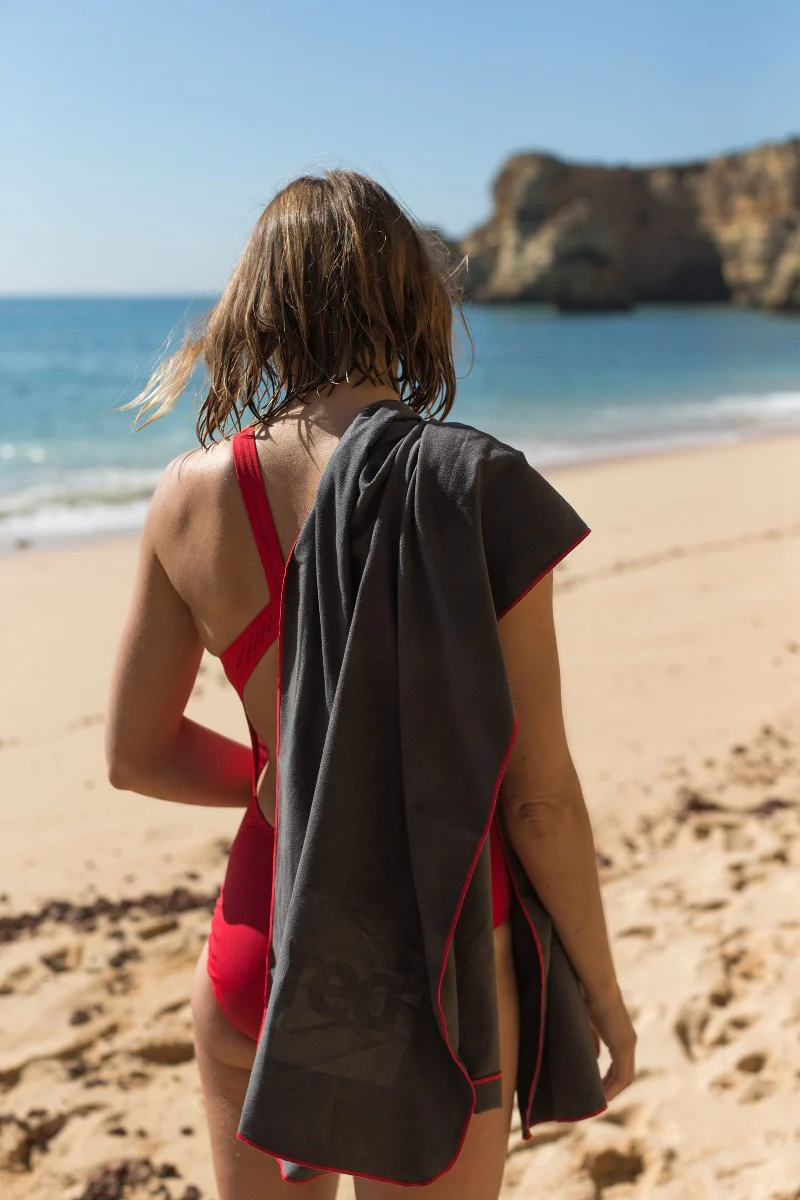 Designed for anyone who loves the water, this large beach size, ultra-compact premium microfibre towel will get you dry in an instant and can be taken anywhere. Soft microfibre fabric absorbs 4 times its weight in water but dries much faster than a standard beach towel, whilst anti-bacterial properties will keep your towel fresh.