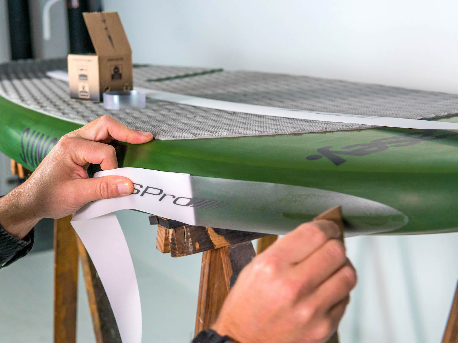 | Protect your board rail. Just enjoy! • Keep your board new and safe. Higher board reselling value. • Clear matt finish transparent protection, matching any board rail colour. • Lightweight. • Optimised size for surf foil boards and wing foil boards below 70 litres. Check measures. • Super-easy installation. • Won't yellow over time. Will last longer than your board. • Design&manufacturing in Barcelona. |