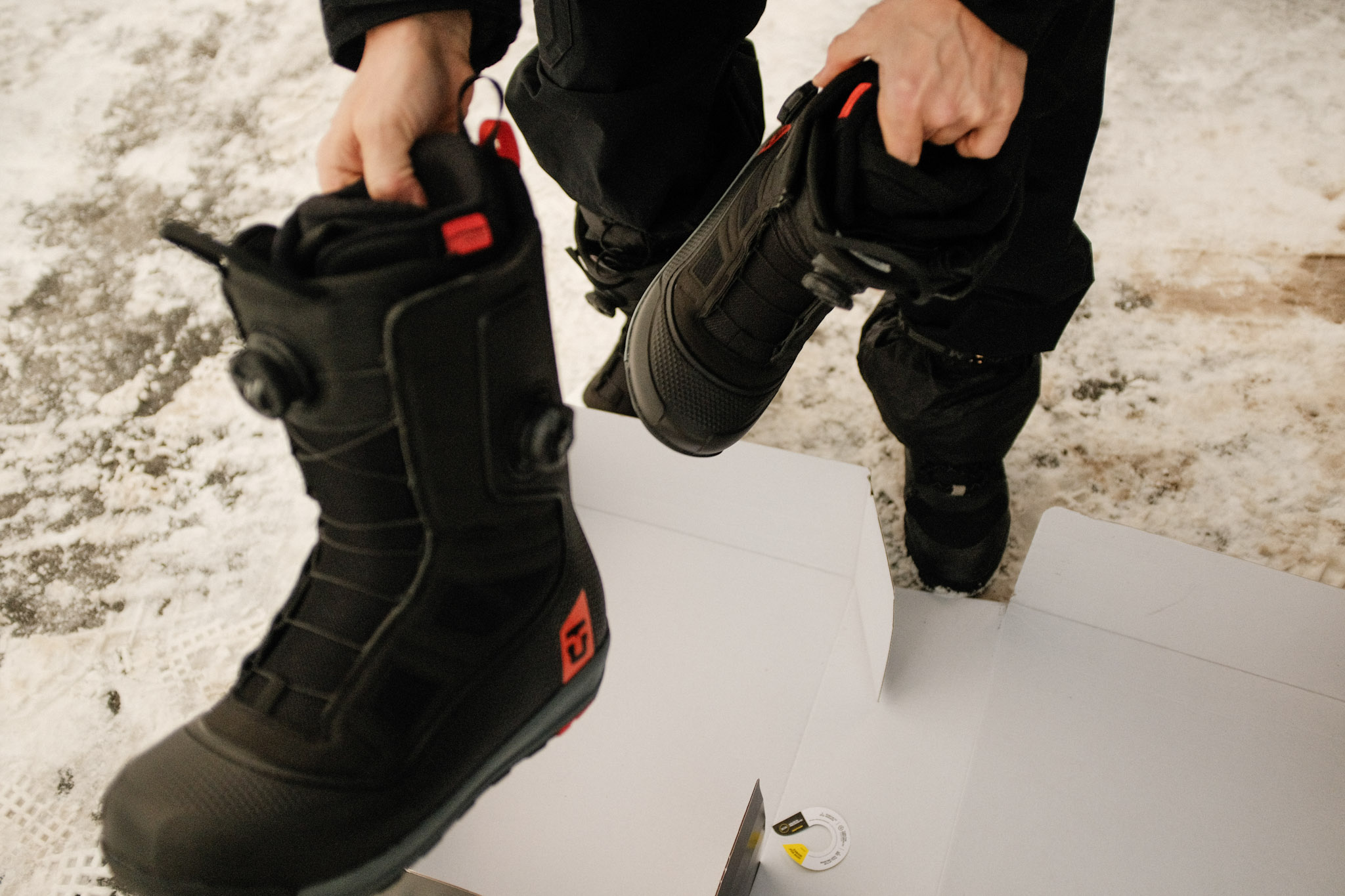 "24. januar 2025. Thomas fra Union drar opp noen lekre boots på parkeringsplassen på Tryvann. Han ser seg nervøst rundt, dette er en hemmelighet. Ingen tilfeldige personer må få vite om den strengt bevoktede foretningshemmeligheten. Finishen ser rå ut, bootsa er lekre og Travis Rice har vært med i design-prosessen i flere år. La oss være ærlige. De hadde noen preasure points og det var tydelig at det var en prototype. Vi ga tydelig tilbakemelding og de bootsene vi har i butikken nå har blitt forbedret i tre runder etter dette. Nå er det fantastiske boots for de som ønsker høy ytelse og komfort. Som Emil her sier; dette er blant de beste bootsene han har hatt på foten ved siden av Deeluxe. Men føtter er føtter, noen liker morra og noen liker faren." SIMEN STRANDÅS